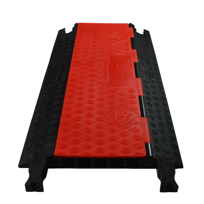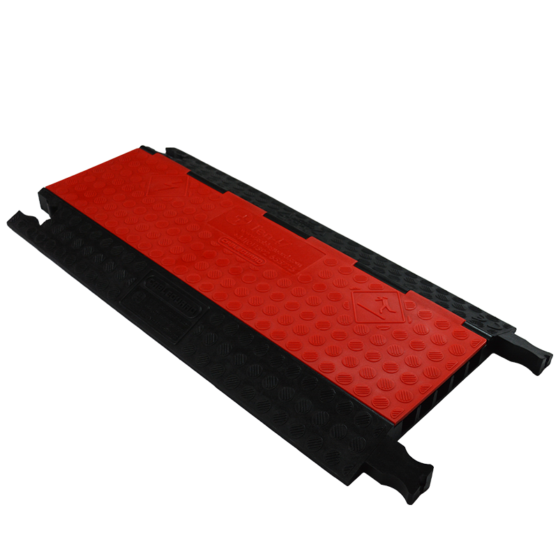 Heavy Duty 5 Channel Cable Ramp with large bolt hole connector, field proven for robustness with the ability to attach to the ground. For use with high volume pedestrian and vehicular traffic.